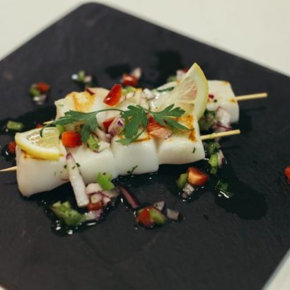 El peso de la caja de los tacos de sepia es de 10 kg.
